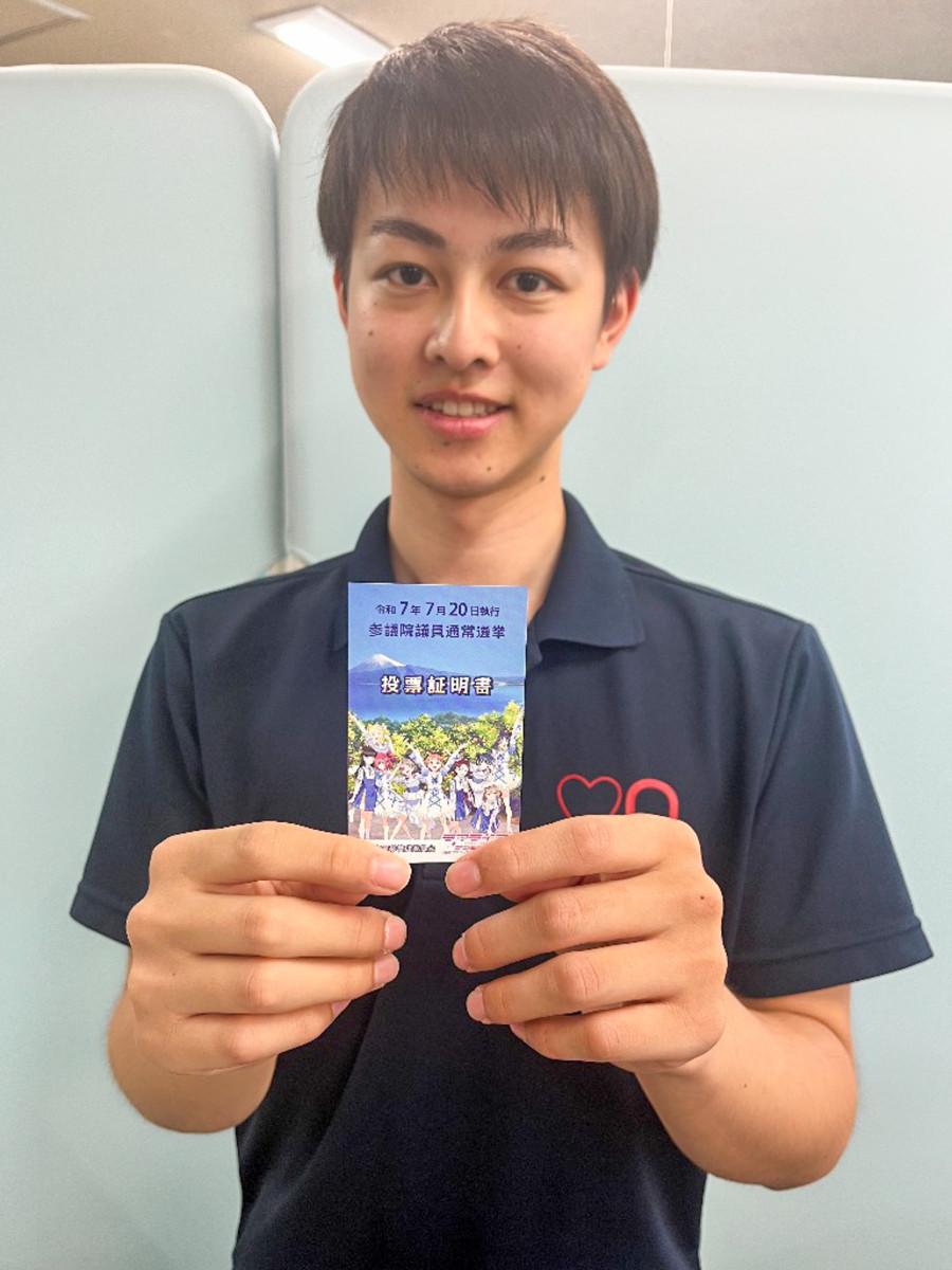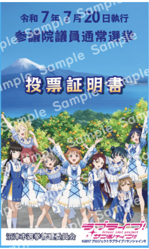 昨年7月の参議院議員通常選挙と同デザインの「ラブライブ!サンシャイン!!」の投票証明書を配布する