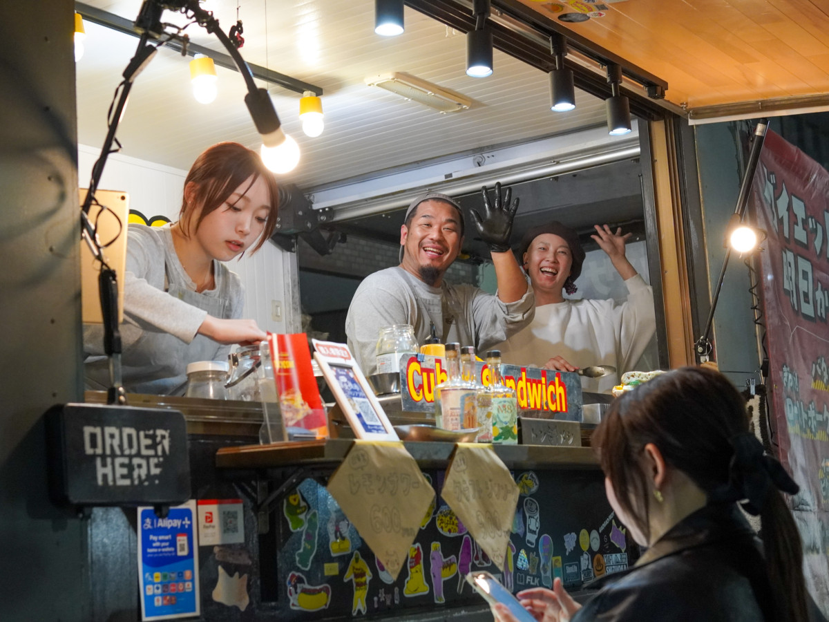 今回は4週連続で開催する1回目。直前で会場変更や強風によるトラブルがあったものの、訪れた20代の女性は「コロナ禍でも青空の下でイベントが行われていることがうれしい。出会いを通じて地元の店に貢献したい」と感想を話す。