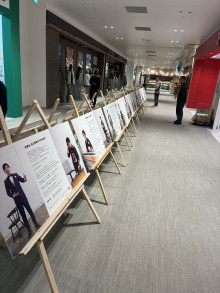 今回が最後となる同プロジェクト。沼津市が開催した「リブランディング企画塾」をきっかけに沼津駅南口近くにあるオーダー服店「サルトリア ルイ」(沼津市大手町)の勝又輝之さんが中心となり、2023年4月に発足した。沼津を支える「名店」の商品を、まちで活躍する人が身にまとい撮影。写真撮影時のインタビューを添えてポスター化し、公共空間を「ジャック」することで沼津の魅力を面的に発信する。5回目となる今回は新たに古着店「ラズマタズ」(添地町)と宝飾店「フジワラ」(大手町)が加わった。3月10日までは沼津駅南口地下通過通路に展示していた。