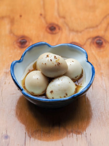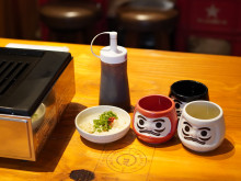 メニューは、「黒毛和牛のてっちゃん(大腸)」(3切れ549円、7切れ1,209円、15切れ2,199円)や「新鮮!厚切り和牛レバー」(1,099円)、「黒毛和牛カルビ」(769円)、「ホルモン麻薬ジャンメン」(1,319円)など。タレは2種類を用意し、ネギやゴマ、タマネギ、ニンニク、粉唐辛子の薬味を使ったしょうゆベースのタレと、だるまの器にだしを入れたレモンベースの「洗いたれ」。「洗いたれ」は肉をくぐらせることで味が完成していく未完成のタレとして提供し、最後は冷麺にかけて楽しむスタイルを提案する。お通しや子ども向けのご飯・韓国のりの食べ放題サービスなども行う。