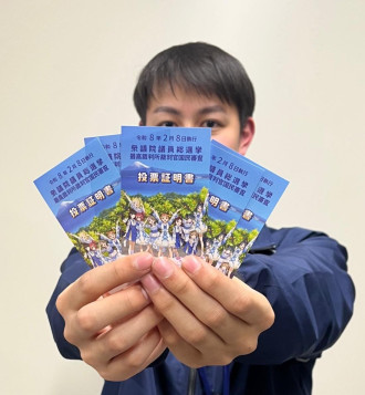 昨年7月の参議院議員通常選挙と同デザインの「ラブライブ!サンシャイン!!」の投票証明書を配布する