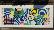 アートイベント「チャレンジ!浄化センターの道路に絵をかこう2025」で仕上がった浄化センターの道路に描いた絵