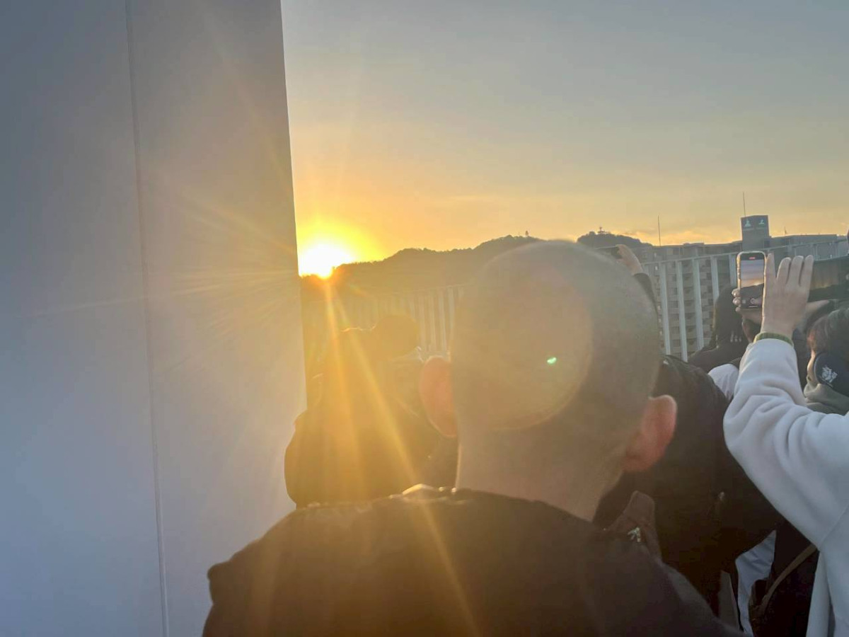 プラサヴェルデ屋上庭園から初日の出を撮影する来場者