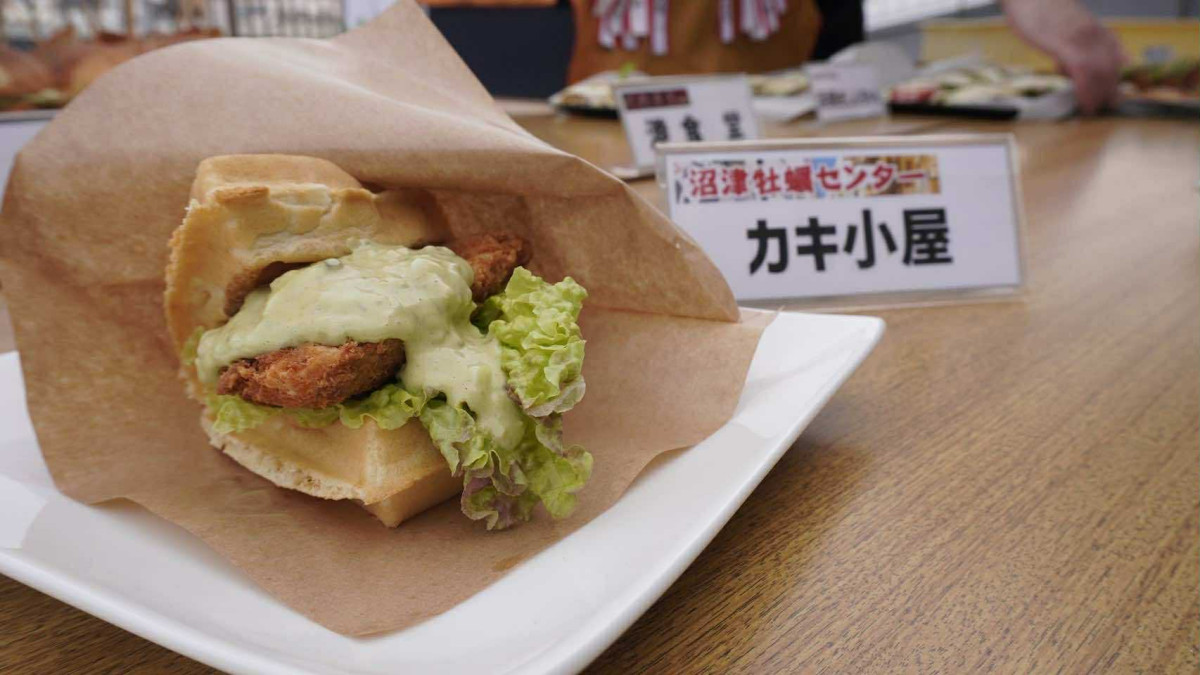 カキ小屋の「静岡茶緑タルタル×モチモチのワッフル」