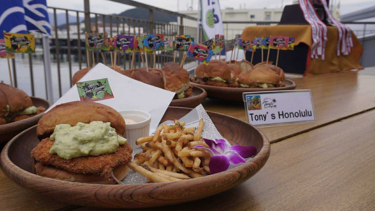 今年9月に青森で開催された「Sea級グルメ全国大会」でグランプリを獲得した「沼津アジフライたるたるサンド(通称=あじたるサンド)」のお披露目会・試食会が11月2日、沼津港のハワイアンカフェレストラン「トニーズホノルル」(沼津市千本港町)で開かれた。