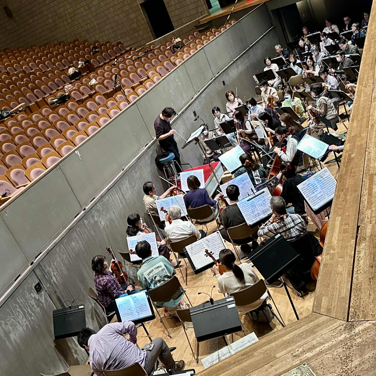 沼津市民文化センターのオケピットに入って合同練習を行う沼津交響楽団のメンバー
