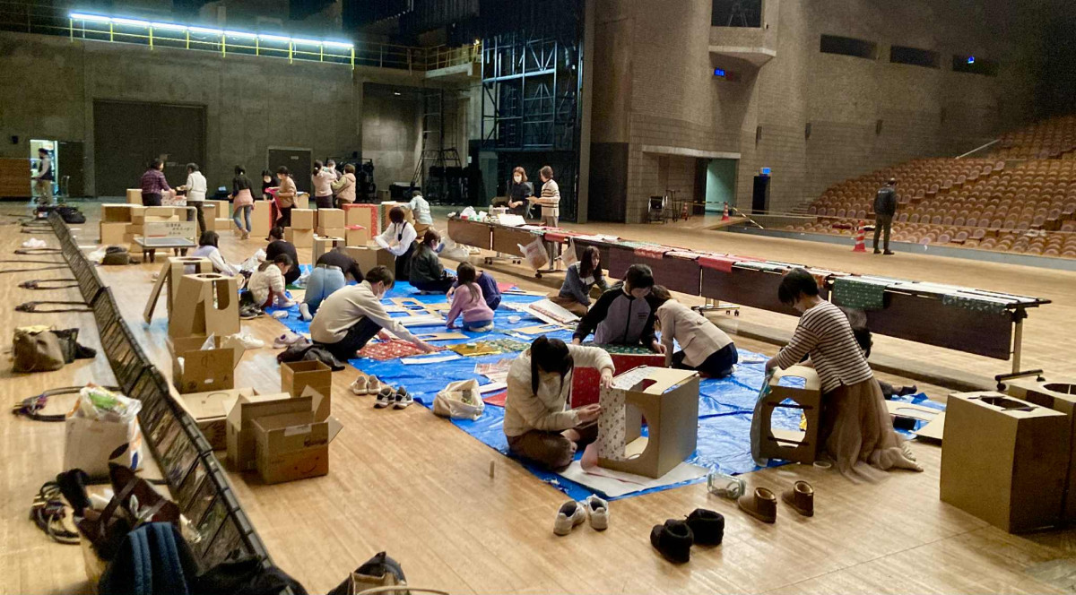 オペラ「ヘンゼルとグレーテル」の合唱団の舞台装飾などを制作するメンバー