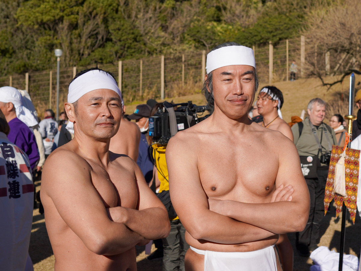 「厳冬海中みそぎ祭り」が1月12日、牛臥山公園(沼津市下香貫)内の小浜海岸で行われた。
