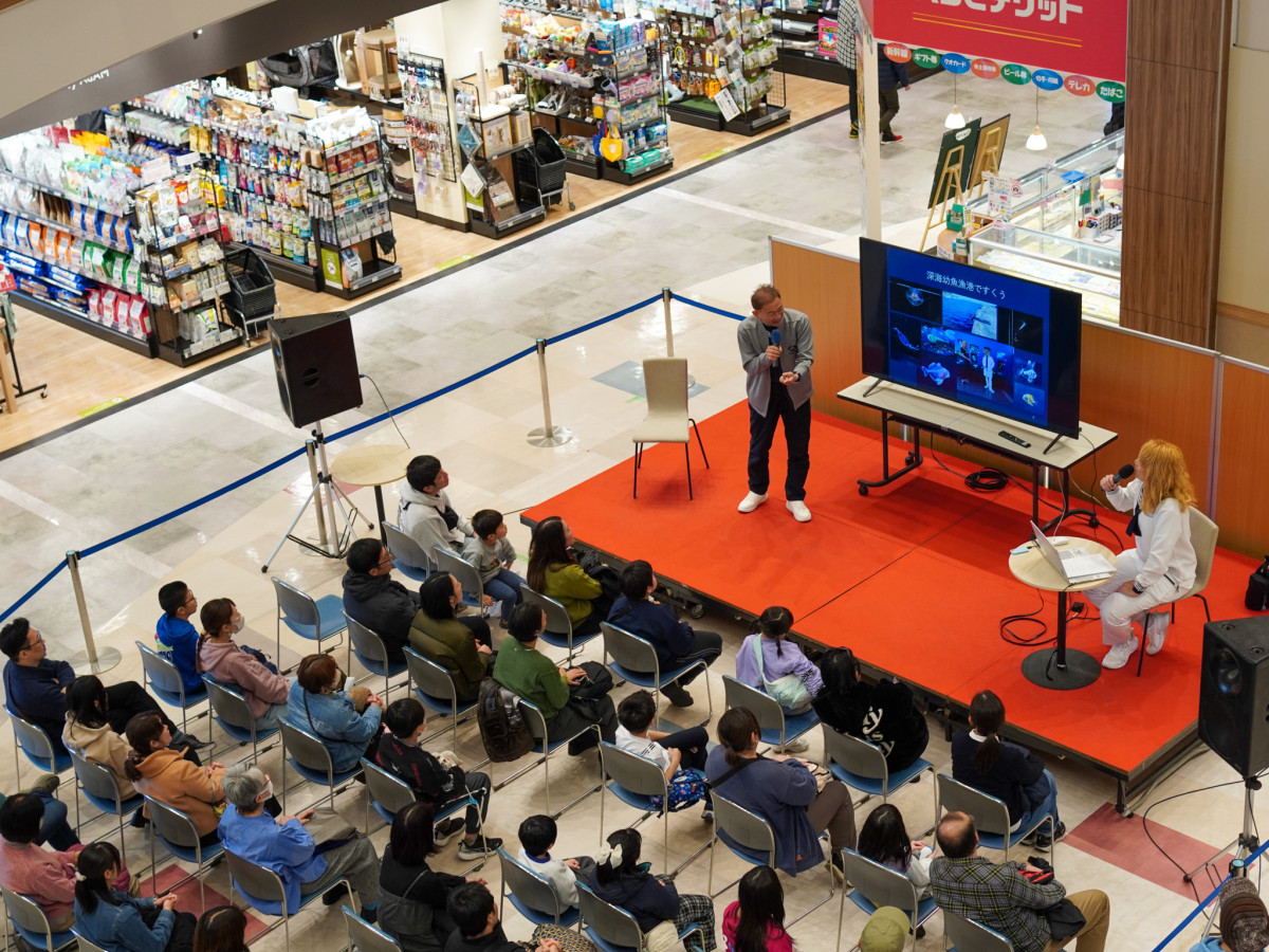 幼魚水族館のリニューアルを記念したスペシャルトークショー「深海幼魚を追え!」の様子