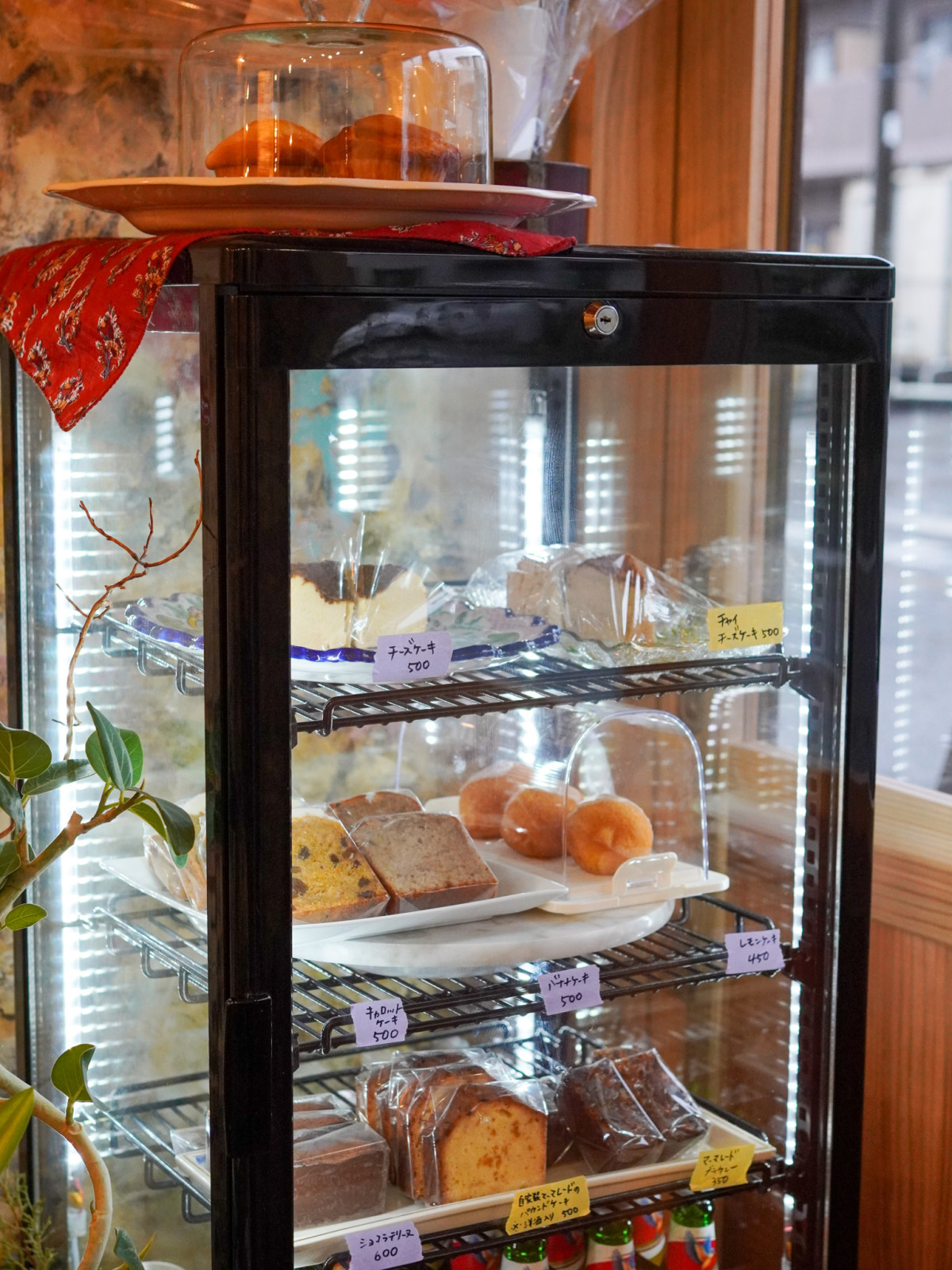 ショーケースで米粉の焼き菓子を提供する「インド料理と喫茶 みとら食堂」=移住夫婦が営む、スパイスカレーと焼き菓子の店