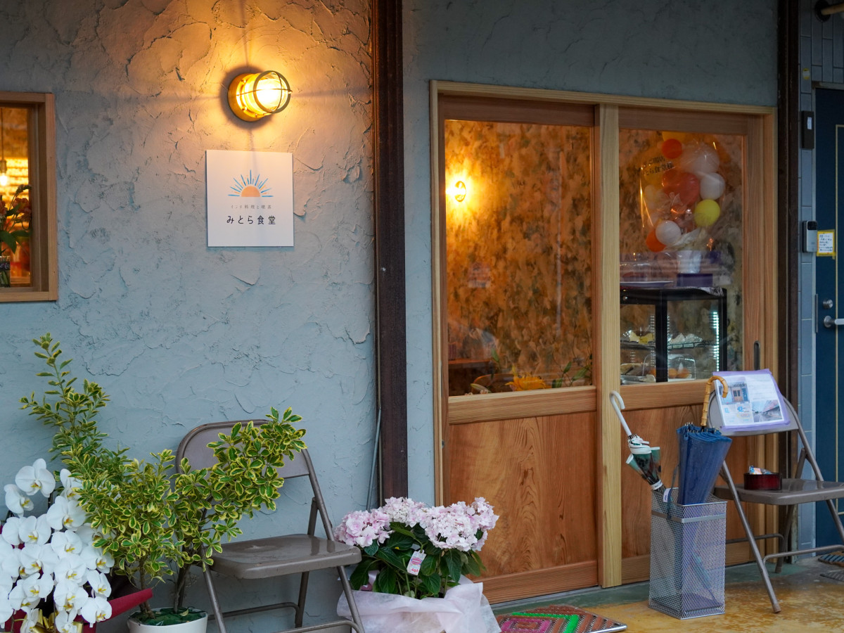 「インド料理と喫茶 みとら食堂」店舗外観 = 移住夫婦が営む、スパイスカレーと焼き菓子の店