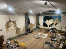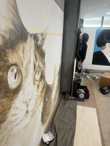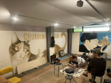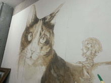 沼津在住のイラストレーター・マツナガマサエさんによるライブドローイング「チャトランの壁 神よ、このplaceで我(われ)を生き延びさせ給(たま)え!」が現在、自家焙煎(ばいせん)コーヒー店「チャトラコーヒー」2階のギャラリー「チャトラ『プレイス』」で開催されている。